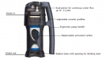 | Technology | Pump filter, ceramic pre filter, 0.2 micron glass fibre membrane, replaceable carbon core |